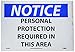 | Feature | Header "NOTICE" and Legend "PERSONAL PROTECTION REQUIRED IN THIS AREA" |