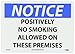 | Feature | Header "NOTICE" and Legend "POSITIVELY NO SMOKING ALLOWED ON THESE PREMISES" |