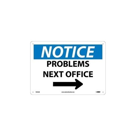 NMC N333RB NOTICE - PROBLEMS - NEXT OFFICE -14 in. x 10 in. Plastic Notice Signage with Right Arrow Graphic, White/Black Text on Blue/White Base