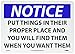- Header "NOTICE" and Legend "PUT THINGS IN THEIR PROPER PLACE AND YOU WILL FIND THEM WHEN YOU WANT THEM"