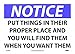 - Header "NOTICE" and Legend "PUT THINGS IN THEIR PROPER PLACE AND YOU WILL FIND THEM WHEN YOU WANT THEM"