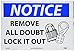 - Header "NOTICE" and Legend "REMOVE ALL DOUBT LOCK IT OUT" with Graphic