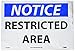 - Clear Visibility: the sign shows the legend “NOTICE - RESTRICTED AREA” in clear, bold letters to ensure visibility in most lighting conditions and even from a distance