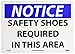| Feature | Header "NOTICE" and Legend "SAFETY SHOES REQUIRED IN THIS AREA" |