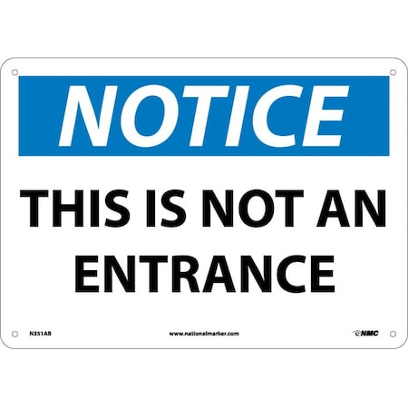 NMC N351AB OSHA Sign, Legend "NOTICE - THIS IS NOT AN ENTRANCE", 14" Length x 10" Height, Aluminum, Black/Blue on White