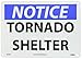 NMC N355RB NOTICE - TORNADO SHELTER – 14 in. x 10 in. Rigid Plastic Notice Sign with White/Black Text on Blue/White Base
