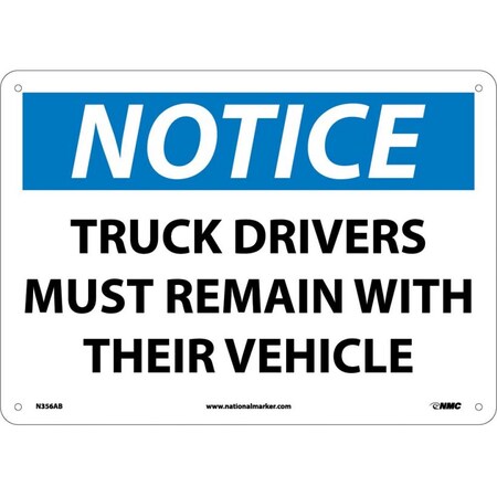 NMC N356AB OSHA Sign, Legend "NOTICE - TRUCK DRIVERS MUST REMAIN WITH THEIR VEHICLE", 14" Length x 10" Height, Aluminum, Black/Blue on White