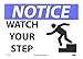- Clear Visibility: clear, bold letters are used to ensure that the legend “NOTICE - WATCH YOUR STEP” is clearly visible. The falling man graphic on the sign makes it easy to understand