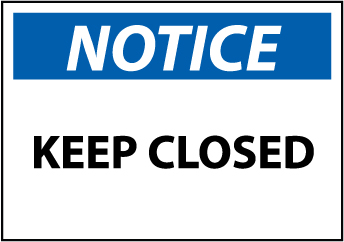 - Header "NOTICE" and legend "KEEP CLOSED"