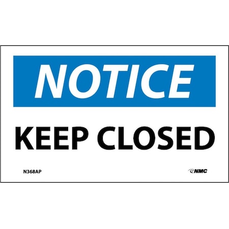 NMC N368AP OSHA Sign, Legend "NOTICE - KEEP CLOSED", 5" Length x 3" Height, Pressure Sensitive Vinyl, Blue/Black on White (Pack of 5)