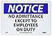 Notice No Admittance Except To Employees On Duty Sign, N38R