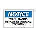 NMC N43APR NOTICE, Sign, WASH HANDS BEFORE RETURNING TO WORK, 3X5, REMOVABLE PS VINYL, PACK OF 5