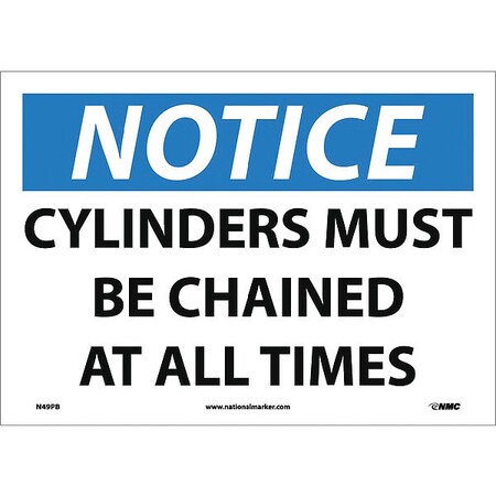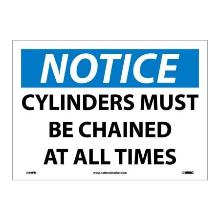 NMC N49PB OSHA Sign, Legend "NOTICE - CYLINDERS MUST BE CHAINED AT ALL TIMES", 14" Length x 10" Height, Pressure Sensitive Vinyl, Blue/Black on White