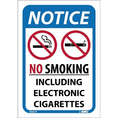 NMC N501P Notice – NO Smoking Including Electronic Cigarettes – 10 in. x 7 in. PS Vinyl Notice Signage with Graphics, White/Black Text on Blue/White Base