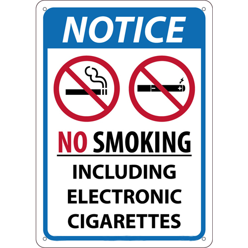 NMC N501PB Notice – NO Smoking Including Electronic Cigarettes – 14 in. x 10 in. PS Vinyl Notice Signage with Graphics, White/Black Text on Blue/White Base