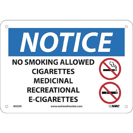 NMC National Marker N502R Notice, No Smoking Allowed, Cigarettes, Medicinal, Recreational, E-Cigs Sign, 7 inches X 10 inches, Rigid Plastic