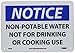 - Header "NOTICE" and legend "NON-POTABLE WATER NOT FOR DRINKING OR COOKING USE"