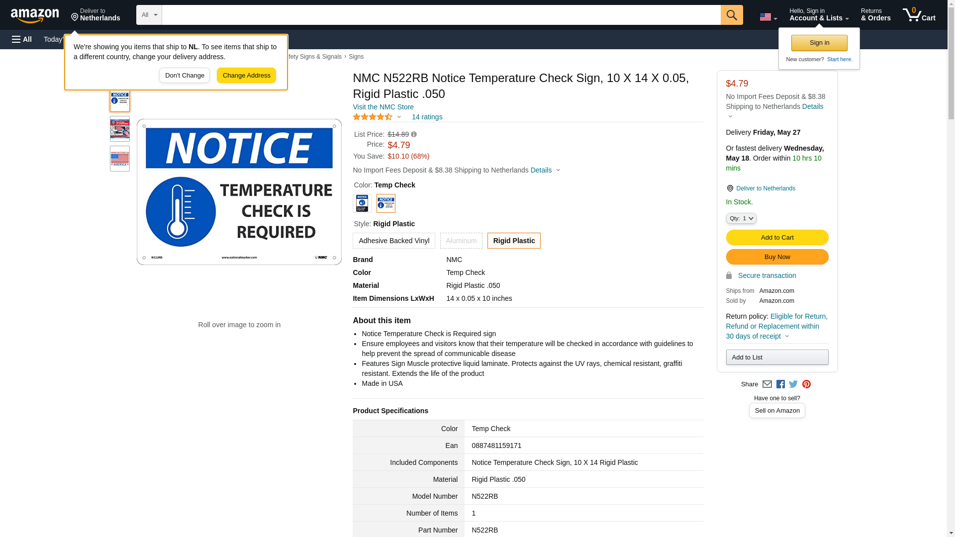 Order N522RB by NMC Sign Notice 10x14", "Temperature Check" - US Mega Store