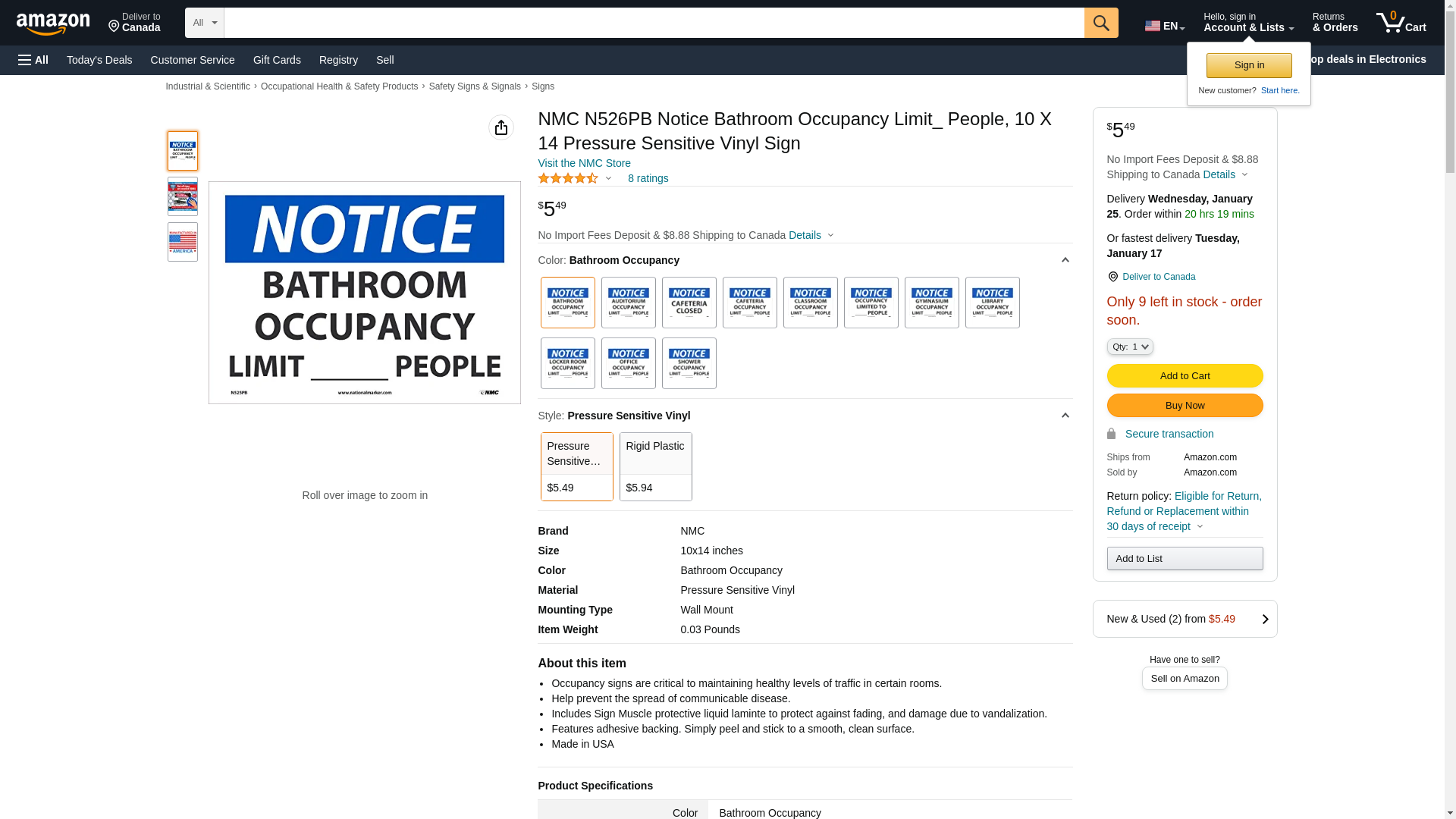 Order N526PB by NMC Sign Notice 10x14", "Bathroom Occupancy Limit People" - US Mega Store