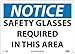 | Feature | Header "NOTICE" and legend "SAFETY GLASSES REQUIRED IN THIS AREA" |