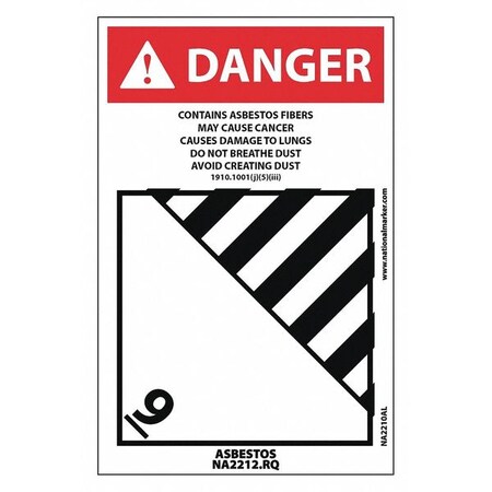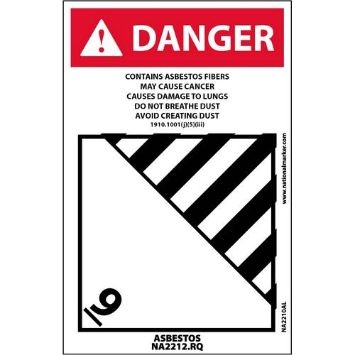NMC NA2210AL Danger Contains Asbestos Fibers Label