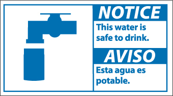 Notice This Water Is Safe To Drink Sign - Bilingual, NBA6R