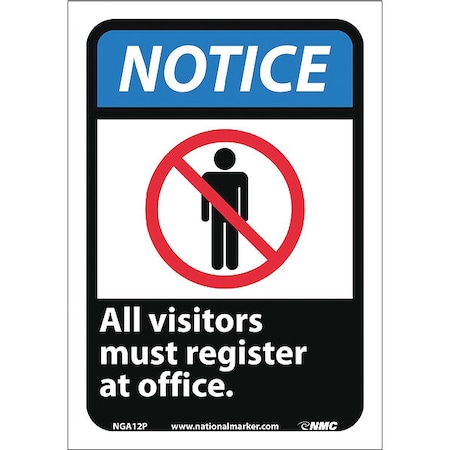 NMC NGA12P Notice - All Visitors Must Register at Office. – 7 in. x 10 in. PS Vinyl Notice Signage with Graphic, White Text on Blue/Black Base