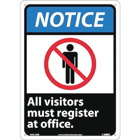 NMC NGA12RB 14"x 10"ANSI Sign w/Legend:Notice - All Visitors Must Register At Office (w/Graphic), Pack of 25 pcs