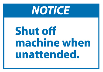 NMC National Marker Corp. NGA13AP Notice Shut Off Machine When Unattended Label