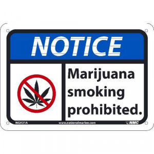 - Notice Signage: is used as a safety measure to restrict people from smoking marijuana in the prohibited area. This Notice sign is often used in restaurants, public places, parks, and commercial jobsites