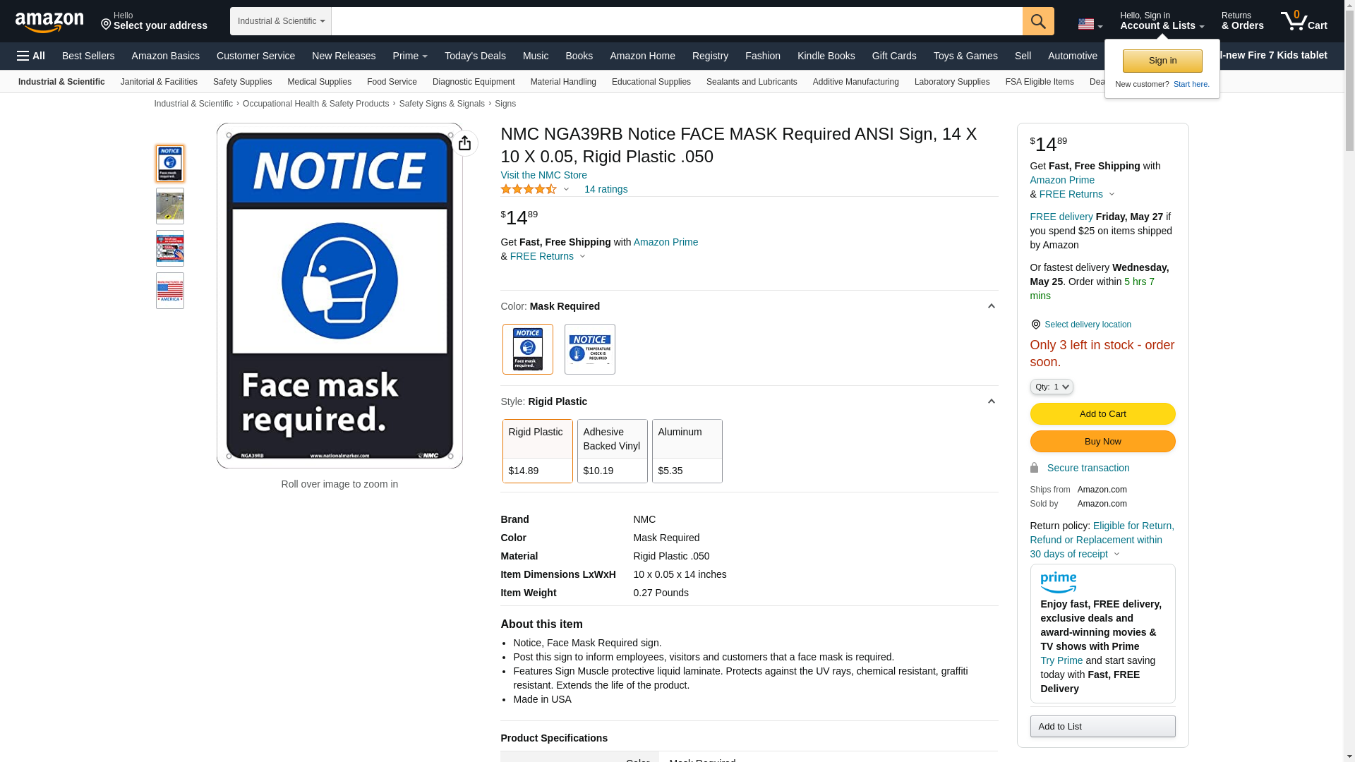 Order NGA39RB by NMC Sign Notice 10x14", "Face Mask Required Ansi" - US Mega Store