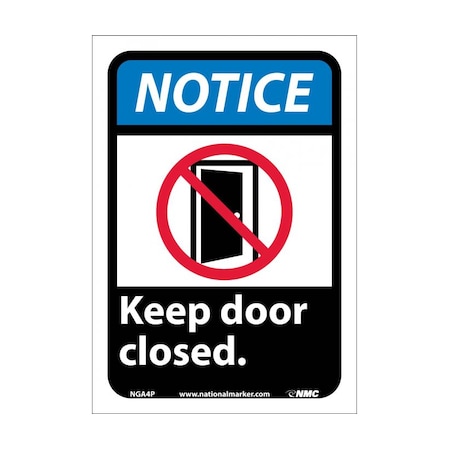 NMC NGA4P Notice -Keep Door Closed. -7 in. x 10 in. PS Vinyl Notice Sign with Graphic, White Text on Blue/Black Base