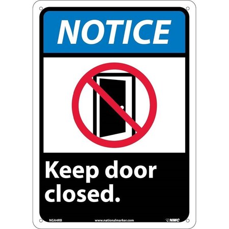 NMC NGA4R Notice -Keep Door Closed. -7 in. x 10 in. Plastic Notice Sign with Graphic, White Text on Blue/Black Base