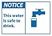 NGA8RB-NOTICE, THIS WATER IS SAFE TO DRINK (W/GRAPHIC), 14X10, RIGID PLASTIC