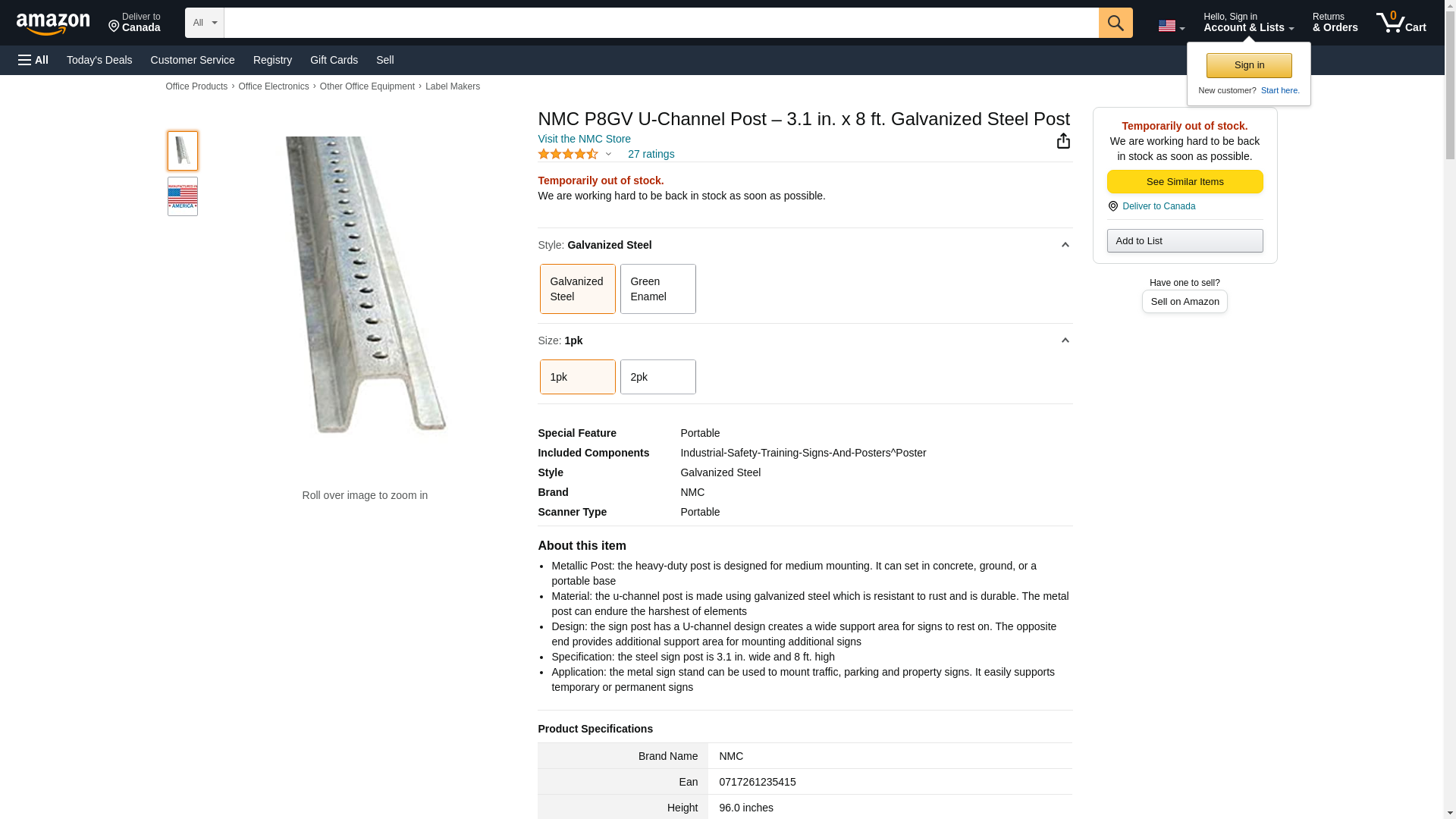 NMC 96" x 3.1 Galvanized Steel U-Channel Sign Post P8GV. ✅NMC authorized distributor ✅. ☎ (800) 884-5767 Mon-Fri 8:00 AM - 5:00 PM ET or order online 24/7
