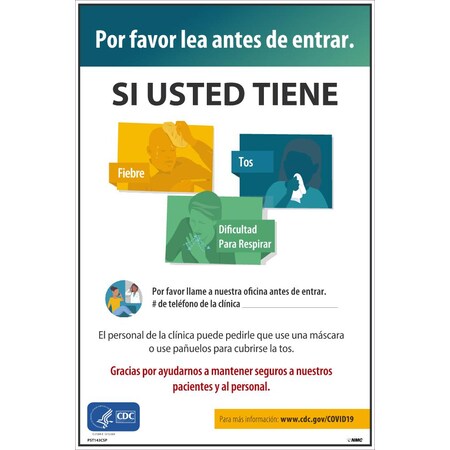 NMC PST143CSP Symptoms Poster, Spanish, 12 x 0.02 x 18, Unrippable Vinyl .015, White