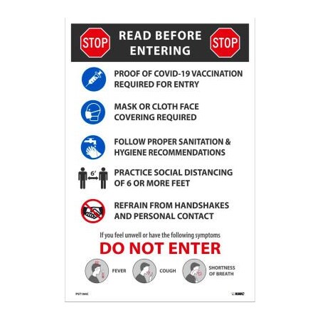 Order PST184C by NMC "Stop! Read Before Entering", Covid-19 Protocol Poster - US Mega Store