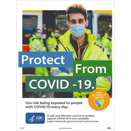 NMC PST189C Protect from Covid-19 (Public Safety Worker), Covid-19 Vaccine, English, 18 X 12 Poster, Heavy-Duty Poster Paper