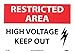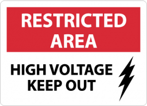 - Header "RESTRICTED AREA" and legend "HIGH VOLTAGE KEEP OUT" with graphic