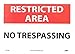 - Clear Visibility: this OSHA compliant sign features the legend “RESTRICTED AREA - PRIVATE NO TRESPASSING” in clear, bold font. It letters are legible for maximum visibility and readability in poor lighting and busy work places