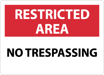 | Feature | Header "RESTRICTED AREA" and legend "NO TRESPASSING" |