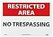 | Feature | Header "RESTRICTED AREA" and legend "NO TRESPASSING" |