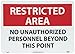 | Feature | Header "RESTRICTED AREA" and legend "NO UNAUTHORIZED PERSONNEL BEYOND THIS POINT" |