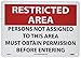 | Feature | Header "RESTRICTED AREA" and legend "PERSONS NOT ASSIGNED TO THIS AREA MUST OBTAIN PERMISSION BEFORE ENTERING" |