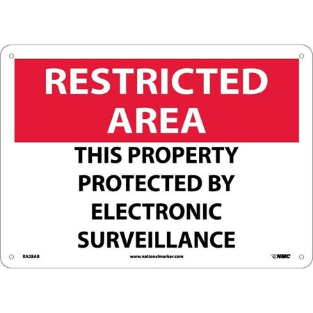 NMC RA28AB RESTRICTED AREA – THIS PROPERTY PROTECTED BY ELECTRONIC SURVEILLANCE Sign – 14 in. x 10 in. Aluminum Security Sign with White/Black on Red/White