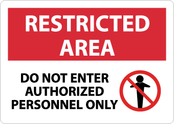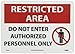 | Feature | Header "RESTRICTED AREA" and legend "DO NOT ENTER AUTHORIZED PERSONNEL ONLY" with graphic |