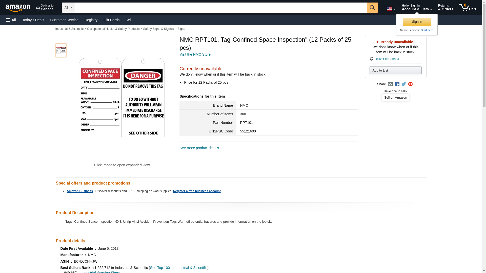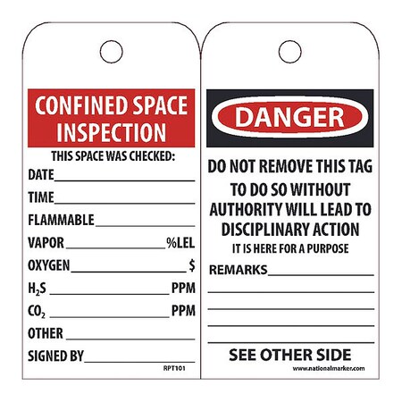 NMC RPT101, Tag"Confined Space Inspection" (12 Packs of 25 pcs)