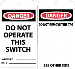 - Header "DANGER" and legend "DO NOT OPERATE THIS SWITCH" and "DO NOT REMOVE THIS TAG"