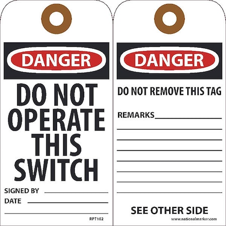 NMC RPT102G, Tag"Do Not Operate This Switch" (10 Packs of 25 pcs)