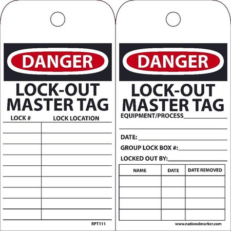 - Header "DANGER" and legend "LOCK-OUT MASTER TAG"